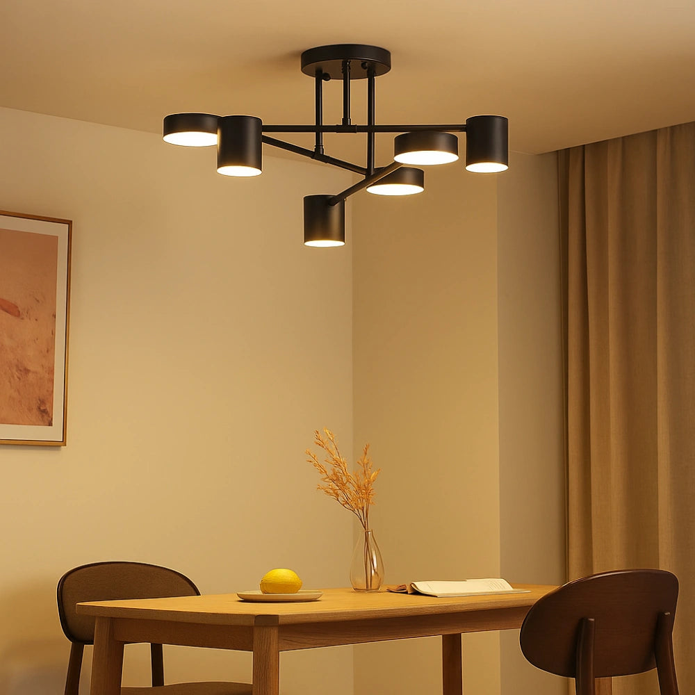 Esta lámpara de techo nórdica para dormitorio ofrece una función de cambio de color en tres tonalidades para adaptarse a diferentes necesidades de iluminación. Su estructura de hierro con recubrimiento anticorrosión y antióxido, combinada con una pantalla de acrílico, crea una luz suave y uniforme. Disponible en varios tamaños, su diseño con brazo ajustable se adapta perfectamente a cualquier estilo de decoración moderna del hogar.