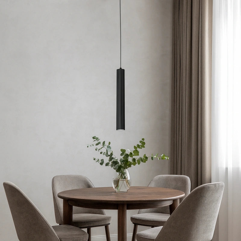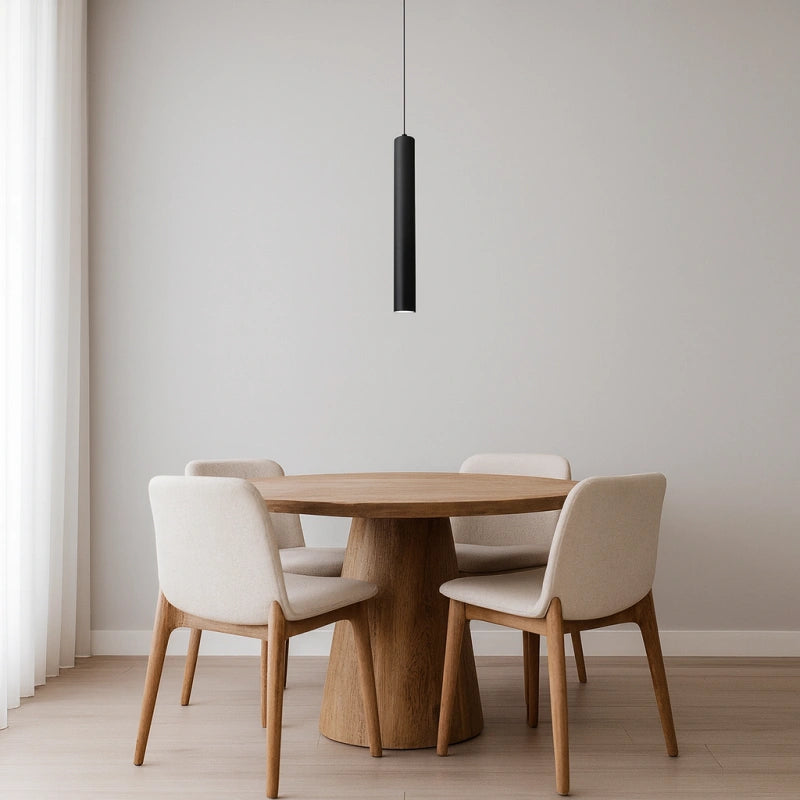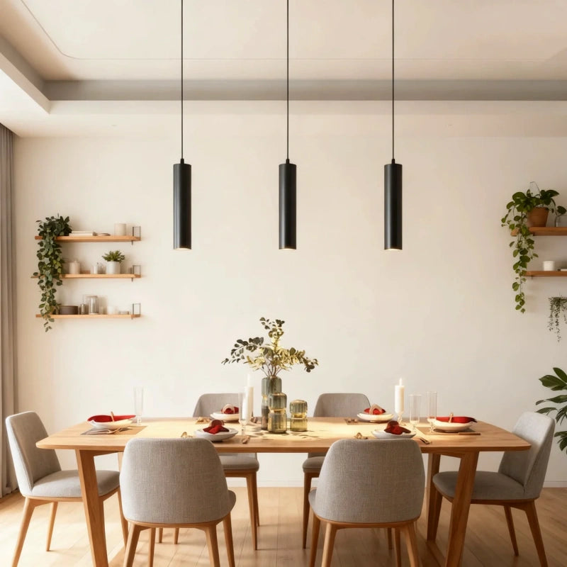 Esta lámpara colgante cilíndrica moderna de metal negra para comedor está diseñada especialmente para espacios de comedor. Fabricada con materiales metálicos resistentes y tratada con pintura horneada, garantiza una excelente durabilidad y resistencia a la corrosión. Se puede ajustar la altura en cualquier momento, adaptándola fácilmente según las necesidades, ofreciendo una iluminación cómoda y duradera que logra un equilibrio perfecto entre funcionalidad y estética. Además, esta lámpara ofrece tres opciones de temperatura de color para adaptarse a diferentes ambientes y requerimientos de iluminación.