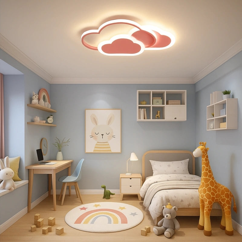 La lámpara de techo infantil nube combina un diseño suave y moderno con tecnología LED de alta eficiencia. Fabricada con cuerpo de hierro metálico y delicadas líneas en forma de nube, ofrece una luz regulable y agradable a la vista. Incorpora LED de alta reproducción cromática, es eficiente y respetuosa con el medio ambiente. Ideal para dormitorio o salón infantil, con certificación CE.