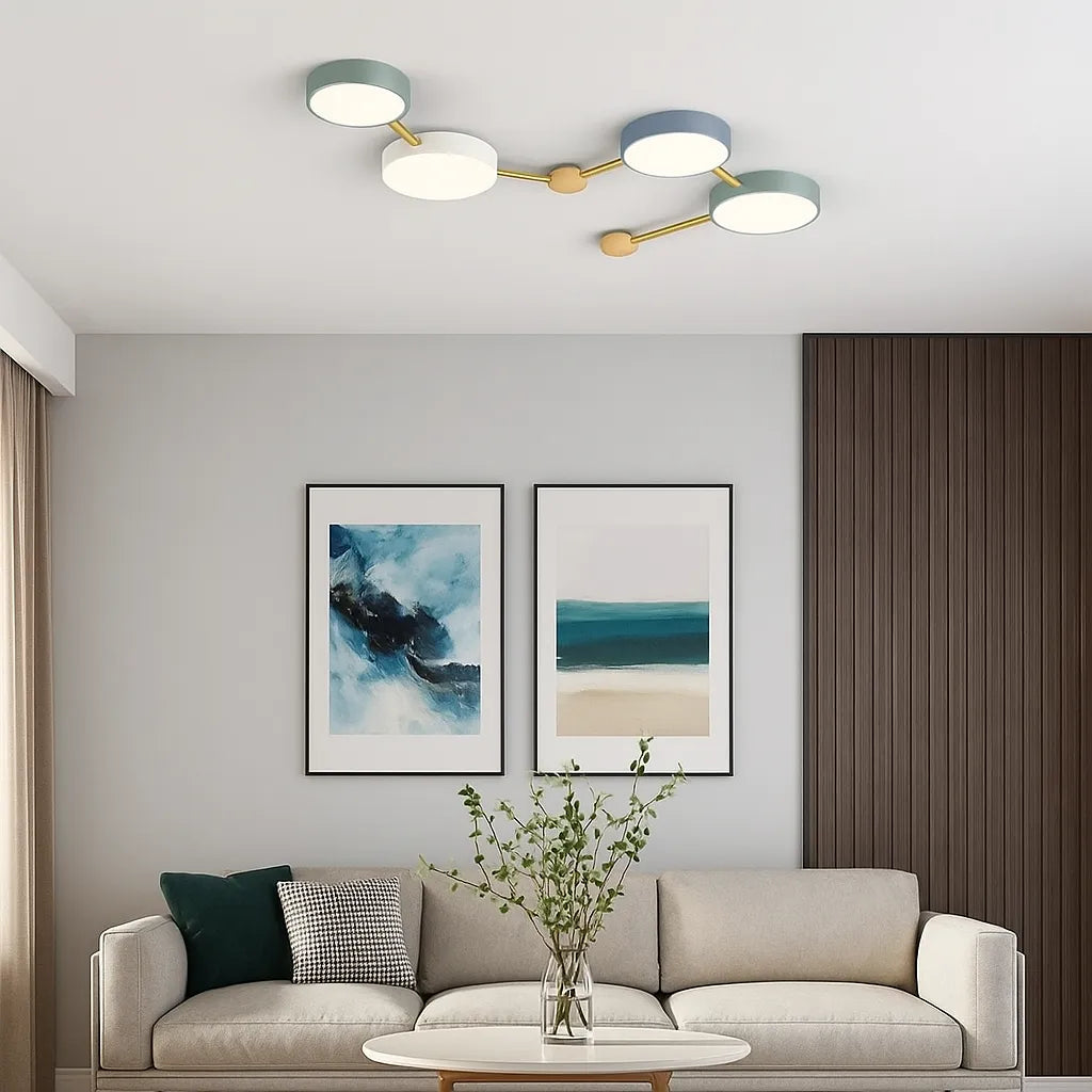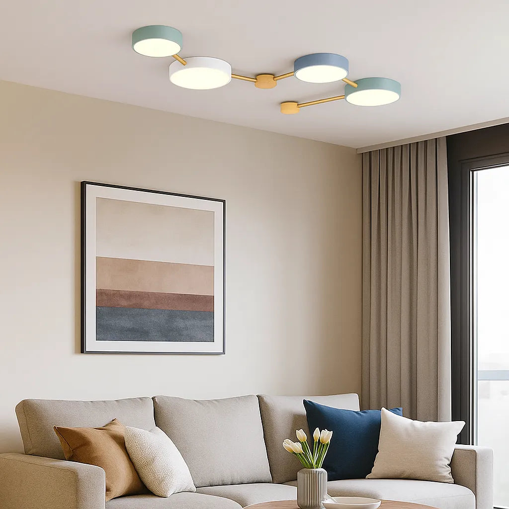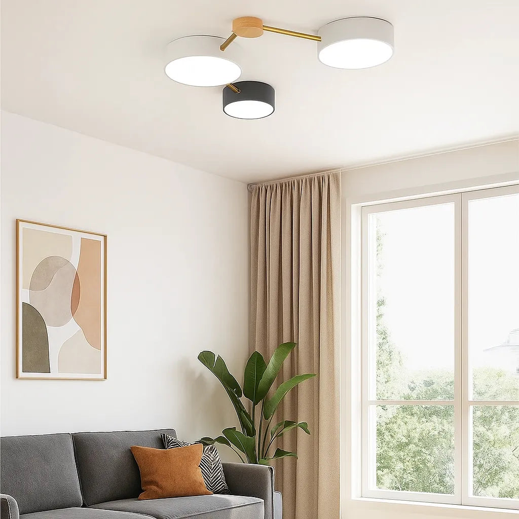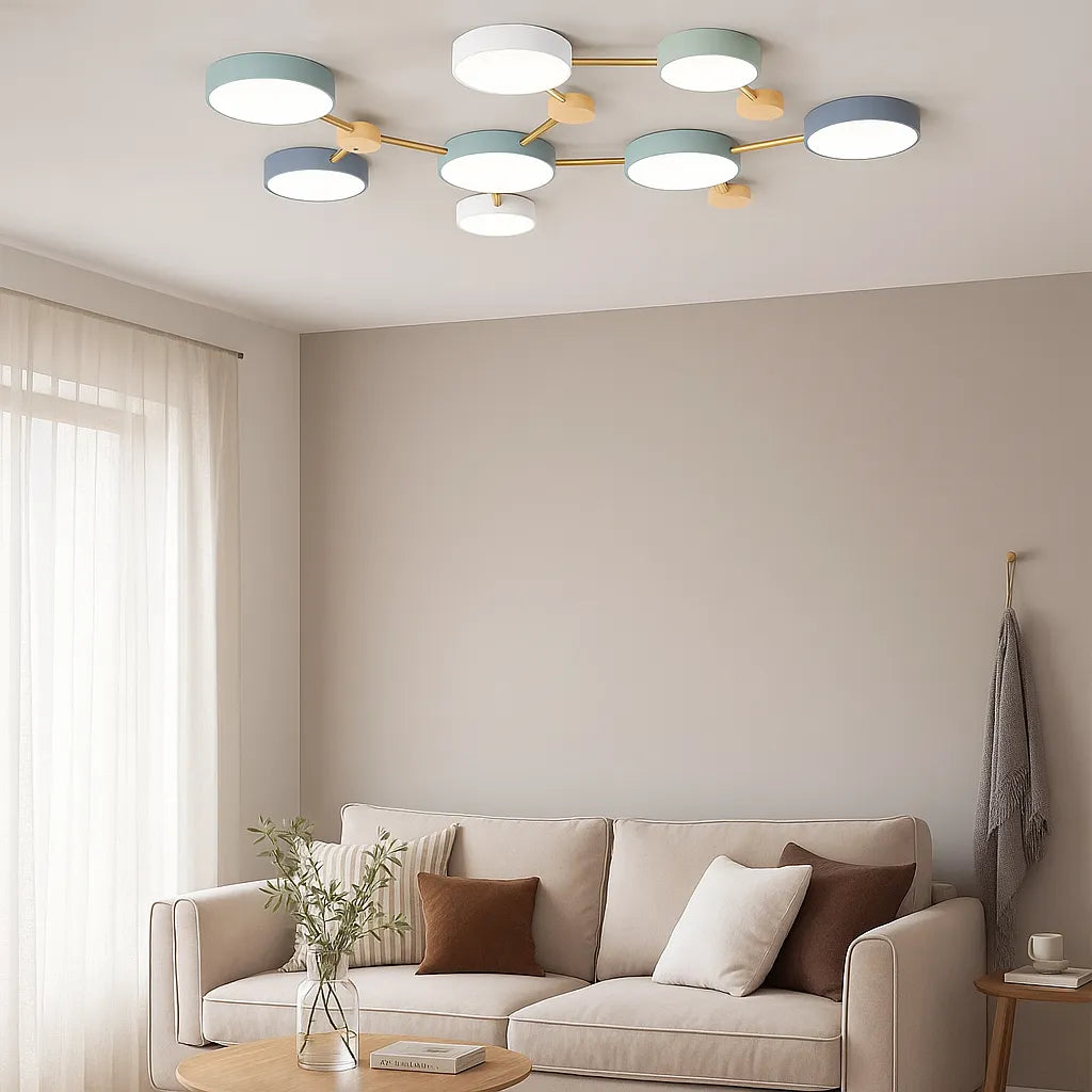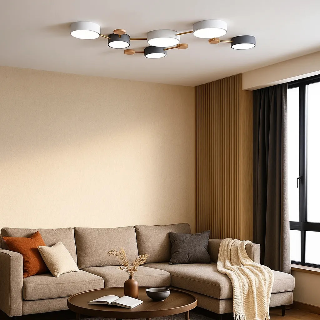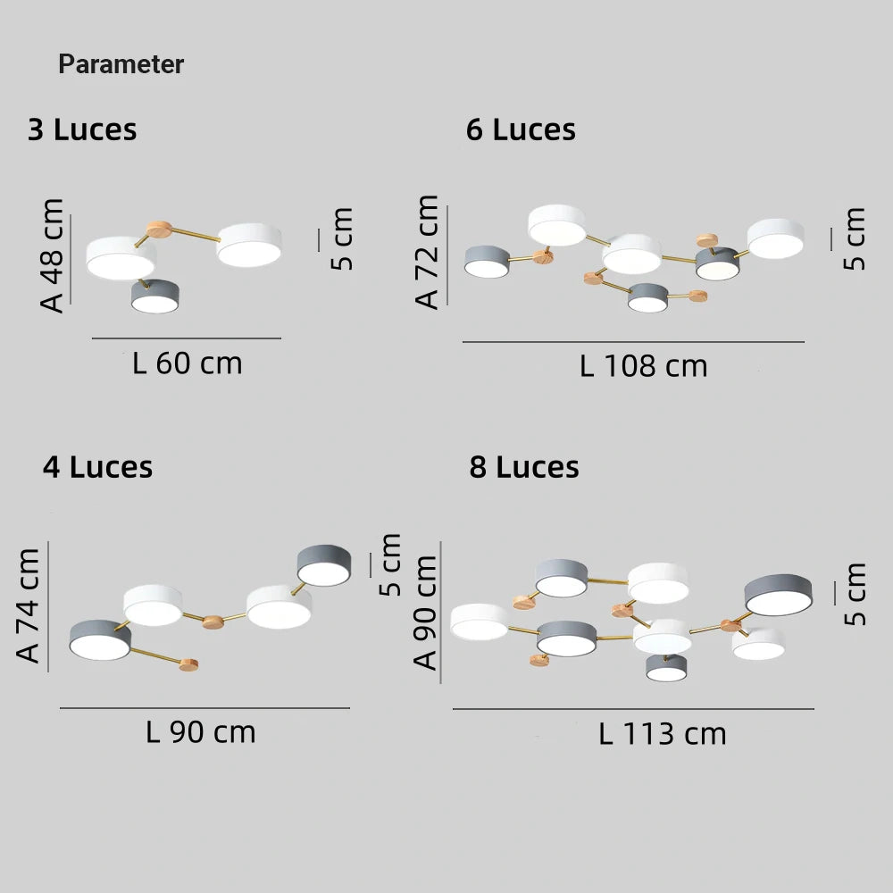 Esta lámpara LED de techo de estilo nórdico y diseño molecular para salón ofrece un efecto de iluminación brillante y uniforme mediante la combinación de múltiples fuentes de luz. El cuerpo de la lámpara utiliza una estructura de hierro con acabado de pintura al horno, de textura delicada, combinada con brazos dorados y detalles en madera natural que aportan un aspecto más refinado. La pantalla redonda está fabricada en acrílico de alta calidad, con una transmisión de luz uniforme y una iluminación suave que no deslumbra. Junto con un controlador de corriente constante y estable, permite una iluminación sin parpadeos y más protectora para la vista. Es adecuada para el salón y otros espacios del hogar, proporcionando un ambiente luminoso y confortable.