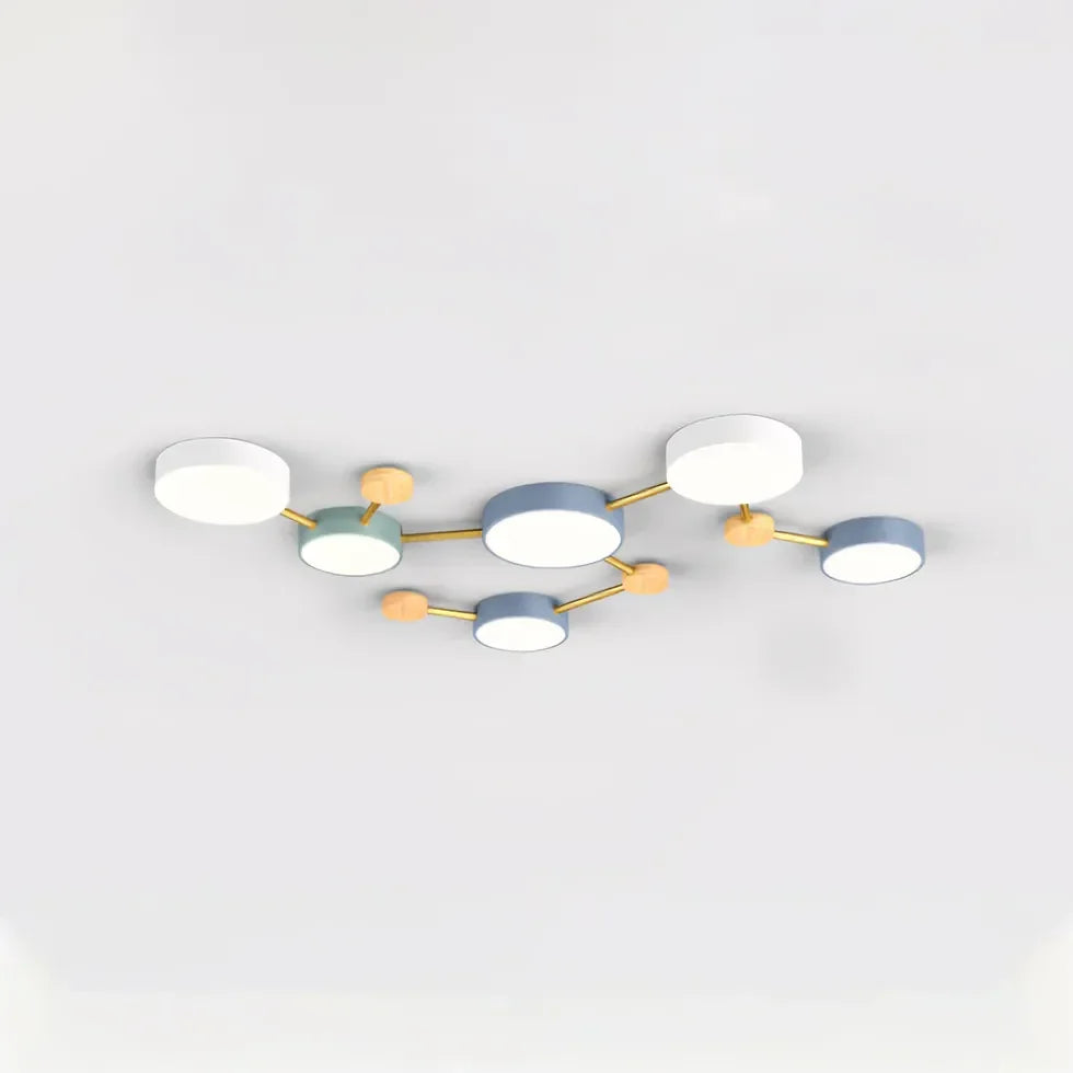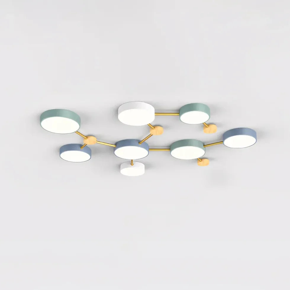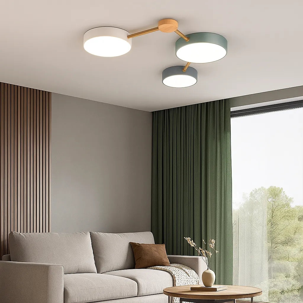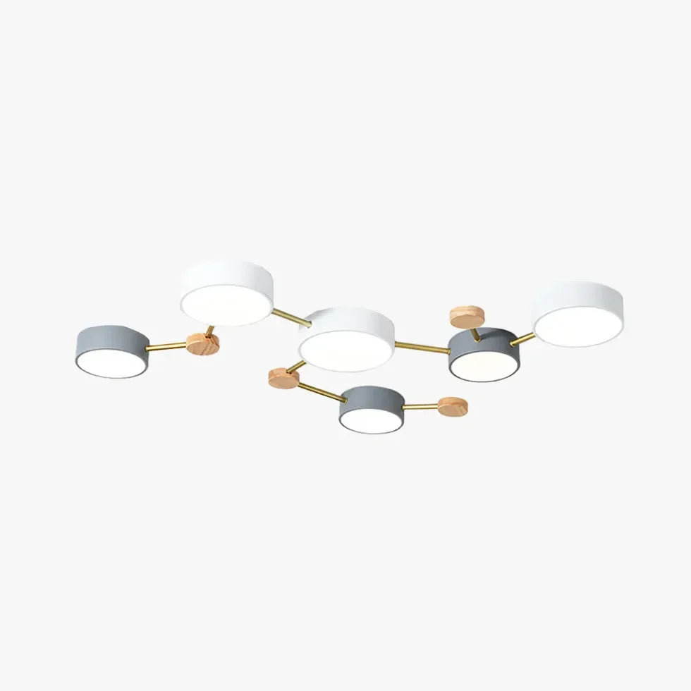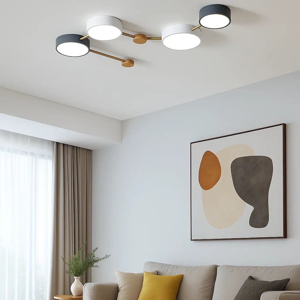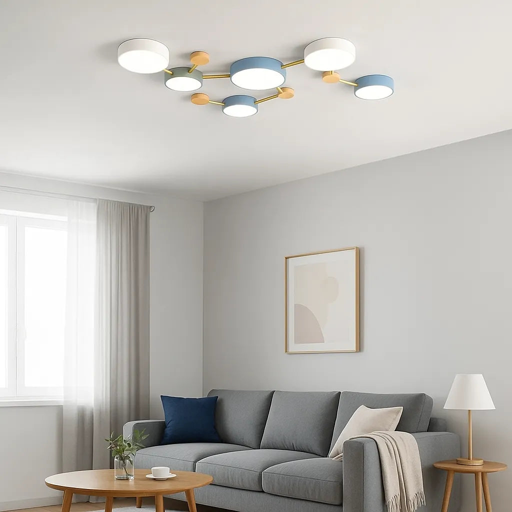 Esta lámpara LED de techo de estilo nórdico y diseño molecular para salón ofrece un efecto de iluminación brillante y uniforme mediante la combinación de múltiples fuentes de luz. El cuerpo de la lámpara utiliza una estructura de hierro con acabado de pintura al horno, de textura delicada, combinada con brazos dorados y detalles en madera natural que aportan un aspecto más refinado. La pantalla redonda está fabricada en acrílico de alta calidad, con una transmisión de luz uniforme y una iluminación suave que no deslumbra. Junto con un controlador de corriente constante y estable, permite una iluminación sin parpadeos y más protectora para la vista. Es adecuada para el salón y otros espacios del hogar, proporcionando un ambiente luminoso y confortable.