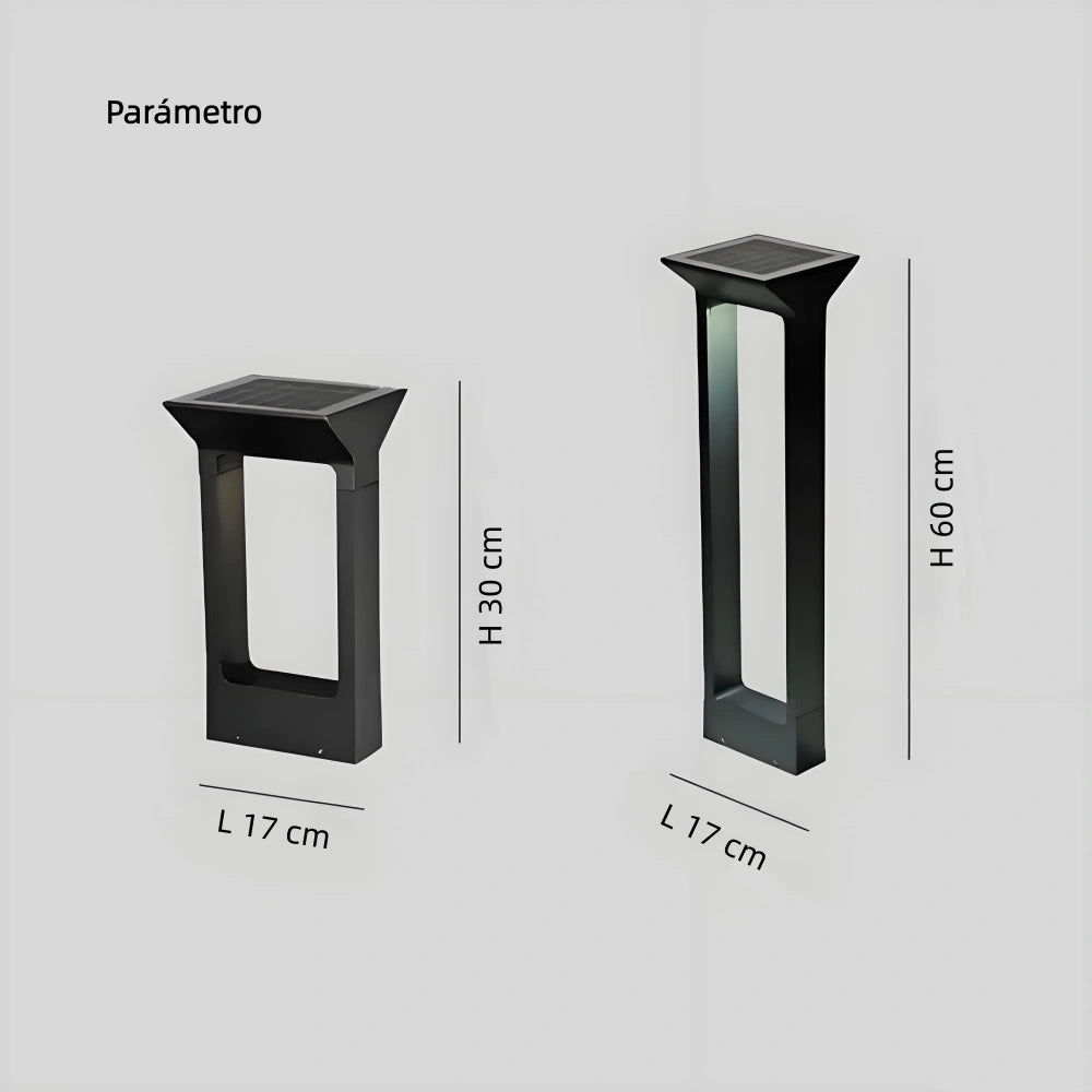 Las balizas solares de jardín LED con diseño moderno rectangular en color negro son ideales para iluminar exteriores, jardín y terraza con eficiencia y durabilidad. Fabricadas en aluminio aeronáutico de alta resistencia, cuentan con acabado de pintura al horno y múltiples tratamientos antioxidantes, ofreciendo protección contra óxido, agua e insectos. Integran panel fotovoltaico de silicio cristalino de alta densidad, que permite una carga completa con solo 4 horas de sol en verano. Con protección IP65, tecnología solar LED y certificación CE, garantizan un uso seguro y fiable en exteriores.