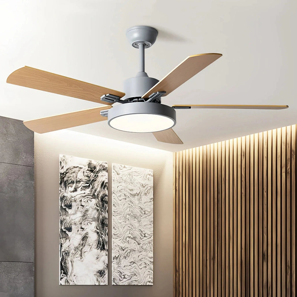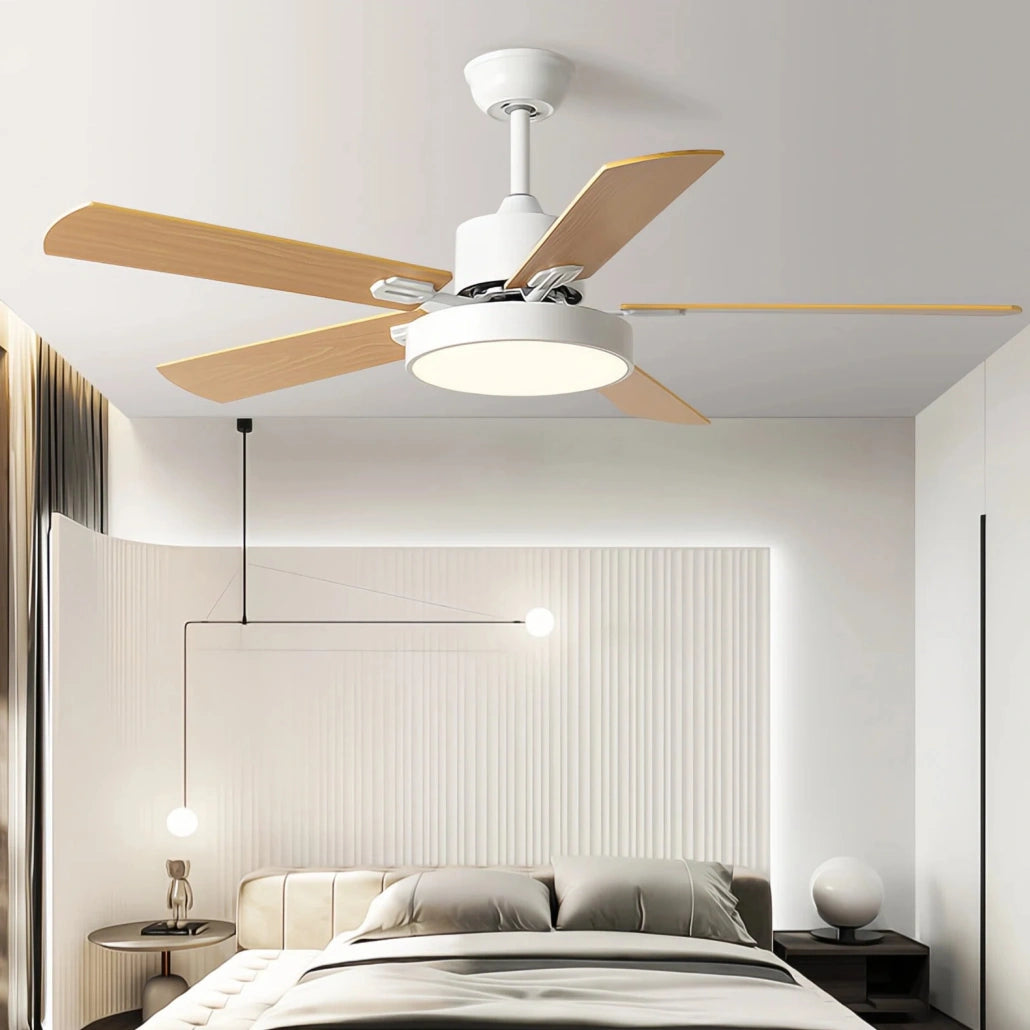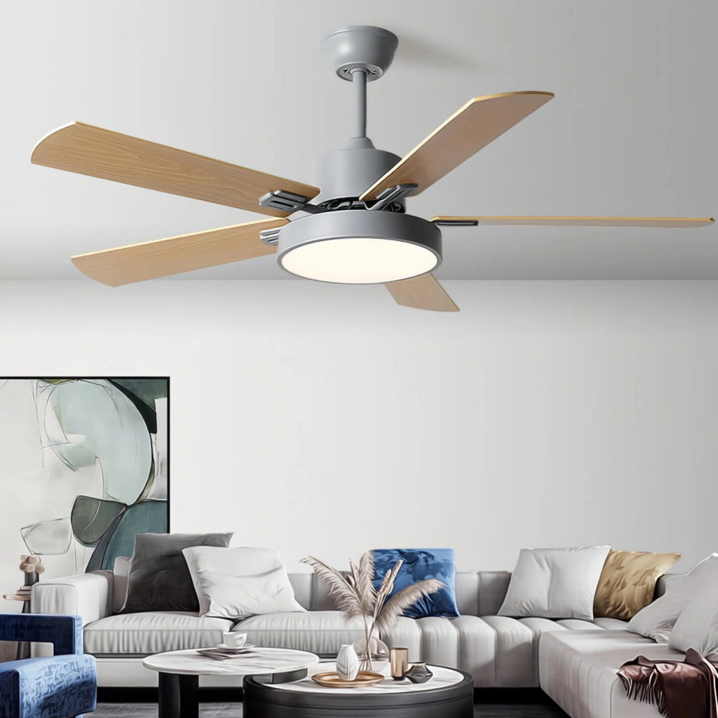 El ventilador de techo 5 aspas combina diseño funcional y estética natural para aportar confort y estilo al hogar. Este ventilador de techo con luz para salon de inspiración nórdica integra iluminación LED con tres tonos regulables, ideal para crear diferentes ambientes en el salón o comedor. Gracias a su motor DC de bajo consumo y funcionamiento silencioso, ofrece un rendimiento eficiente con 6 velocidades y modo verano e invierno, permitiendo optimizar la circulación del aire durante todo el año.