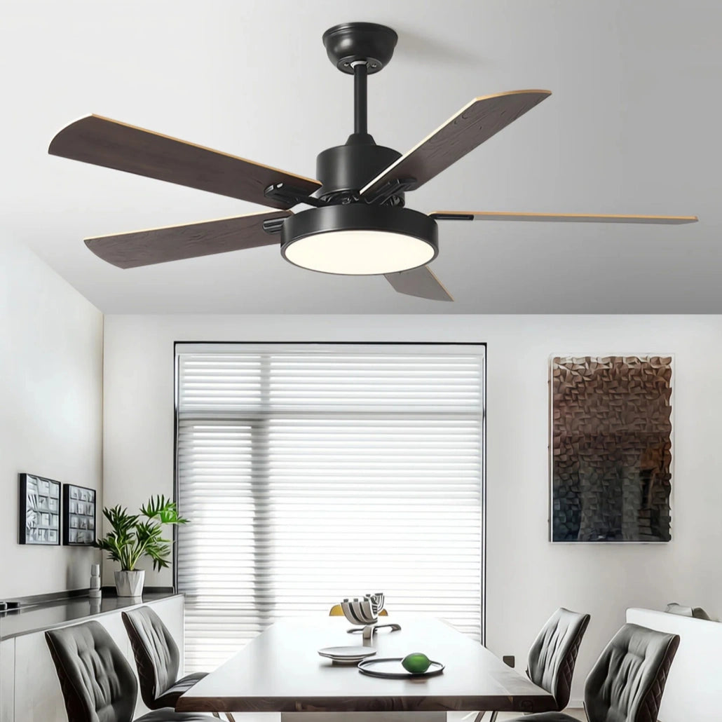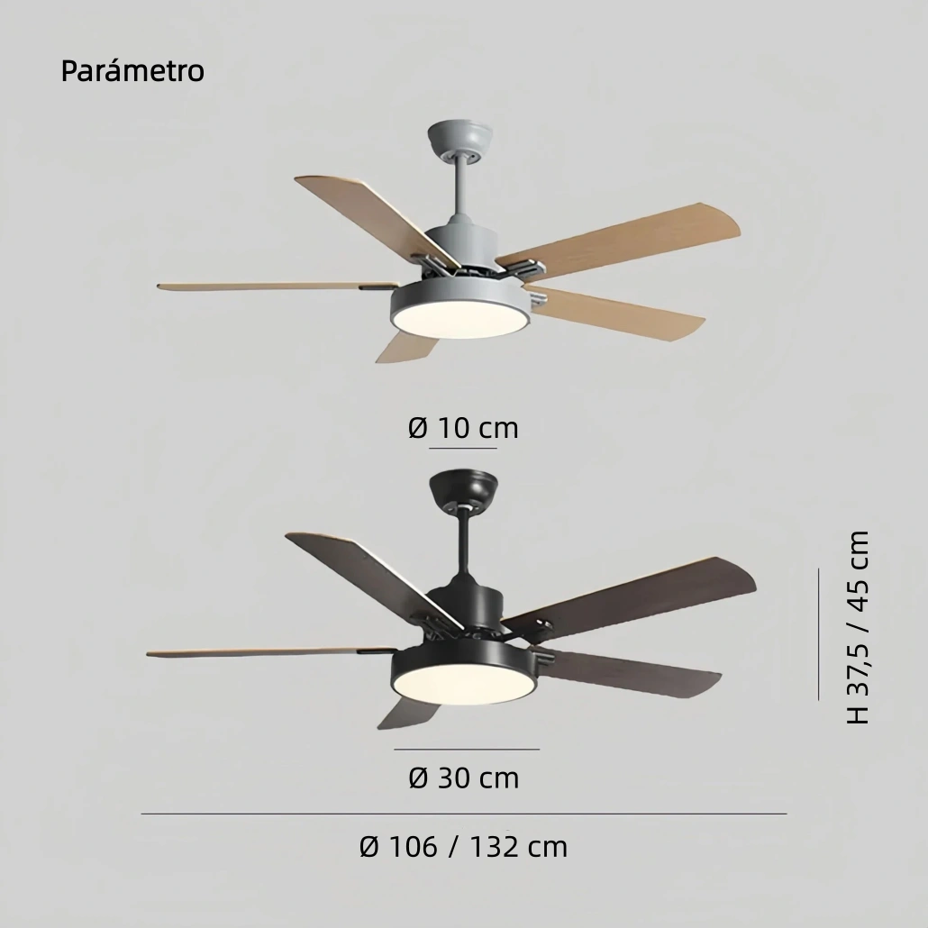Fabricado con motor de cobre de alta calidad y doble rodamiento silencioso, garantiza estabilidad, durabilidad y un funcionamiento suave. Su difusor de PMMA de alta transparencia proporciona una iluminación uniforme y resistente al calor. Las aspas de madera reforzada generan un flujo de aire agradable y silencioso, además de ser resistentes y fáciles de limpiar. Con mando a distancia, este ventilador de techo para comedor permite controlar fácilmente todas sus funciones. Cuenta además con certificación CE, asegurando seguridad y calidad en su uso diario.
