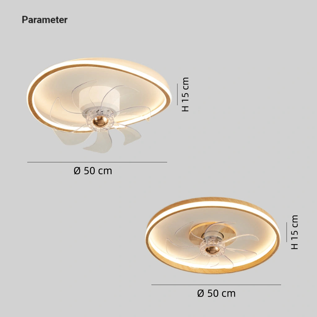 ventilador de techo con luz madera de estilo nórdico, diseñado para aportar elegancia y funcionalidad a cualquier espacio. Este moderno ventilador de 50 cm combina materiales de alta calidad como hierro, madera de caucho y aspas de PVC, integrándose perfectamente en dormitorios y salones.