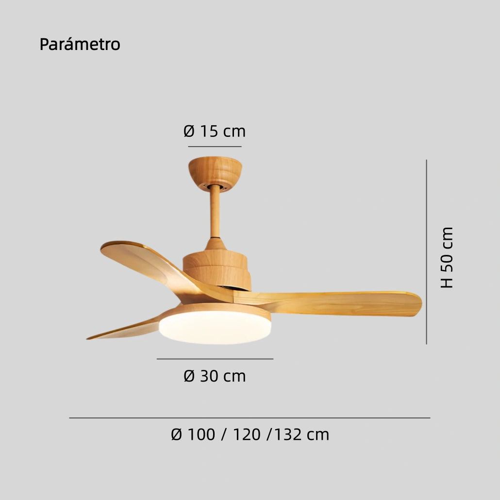 Los ventiladores de techo madera con luz combinan diseño decorativo y eficiencia en un moderno ventilador de techo con luz ideal para interiores. Equipados con LED de alta reproducción cromática (Ra≥95) y tres tonalidades ajustables, proporcionan una luz suave, uniforme y adaptable a diferentes ambientes, mejorando el confort visual.