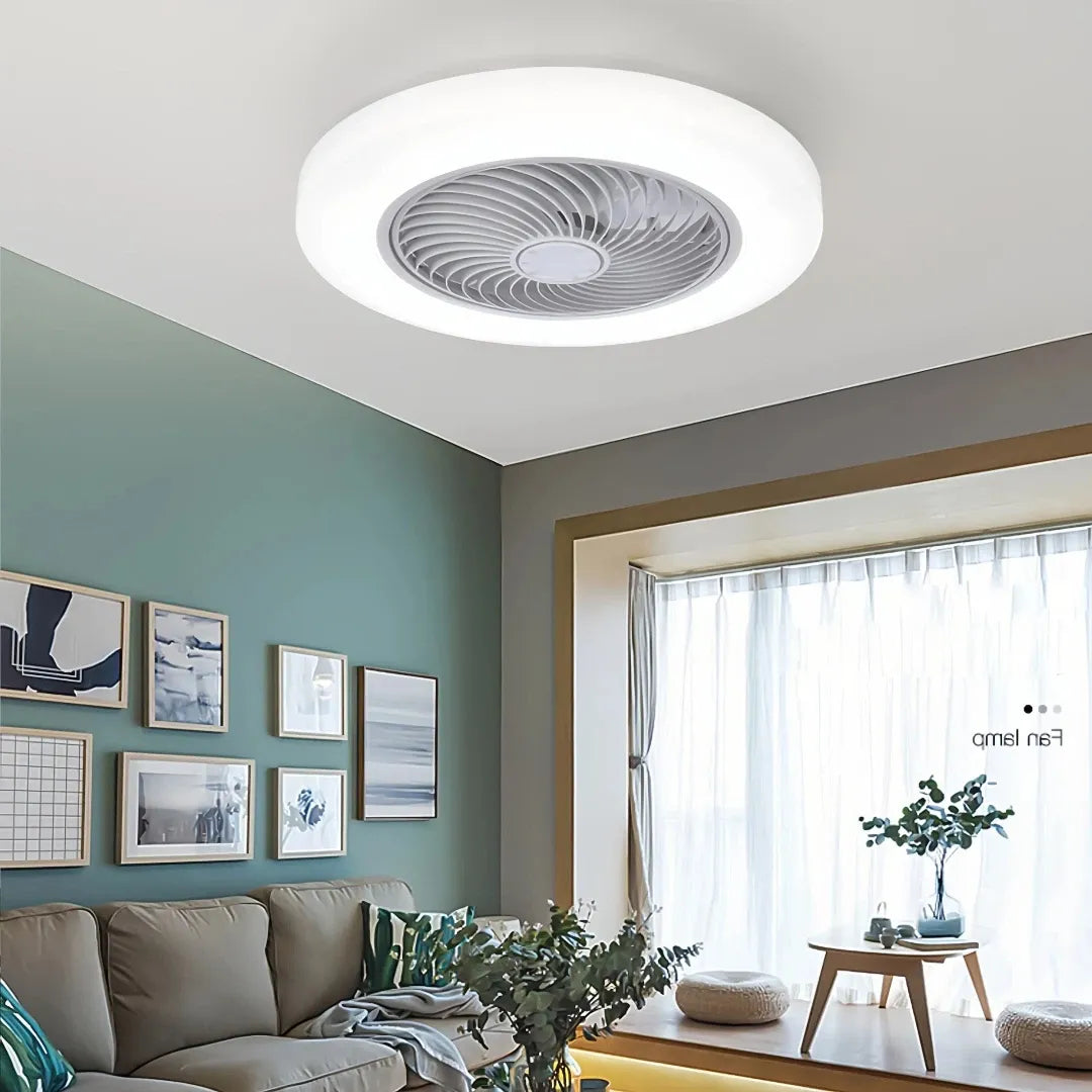 El ventilador de techo redondo con luz de diseño moderno es la opción ideal para dormitorio y salón. Este ventilador de techo con luz combina iluminación eficiente y ventilación potente en un solo producto, aportando confort y estilo al espacio.